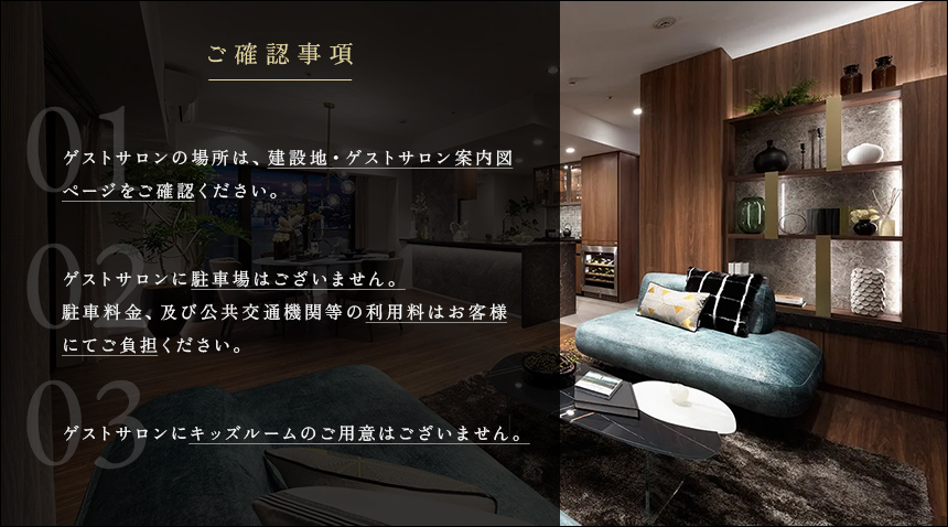 ②ゲストサロンに駐車場はございません。駐車料金、及び公共交通機関等の利用料はお客様にてご負担ください。